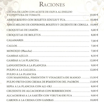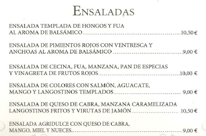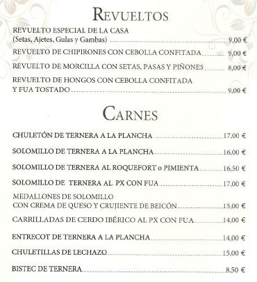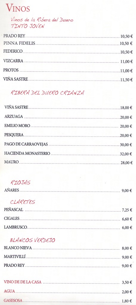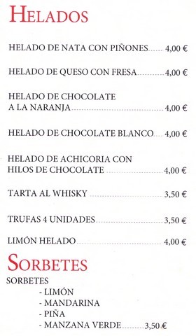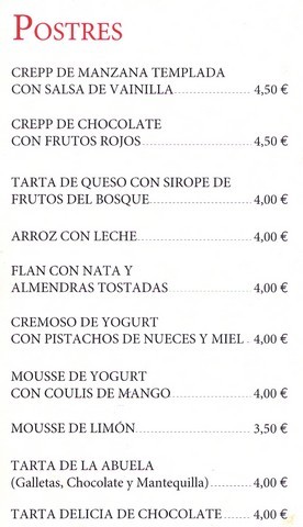 La Carta, Postres y Vinos