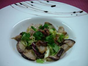 Bouquet de Ensalada de Boletus confitados, Manitas de Cerdo y Vinagre de Soja