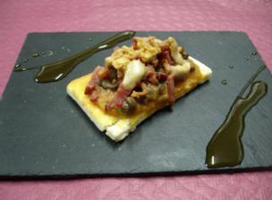 Crujiente de Beicon, Perrechicos y Migas de Foie